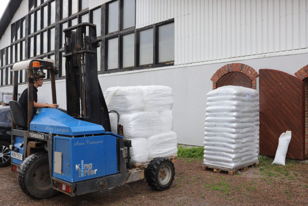 Vi eftersträvar att våra lastbilar som levererar foder och strö inte skall gå tomma tillbaka, eftersom vi månar om miljön. Därför planerar vi alla transporter så att vi kan optimera rutterna, om vi levererar på ett ställe ser vi till att hämta upp på ett annat ställe och på så vis sluter cirkeln.
